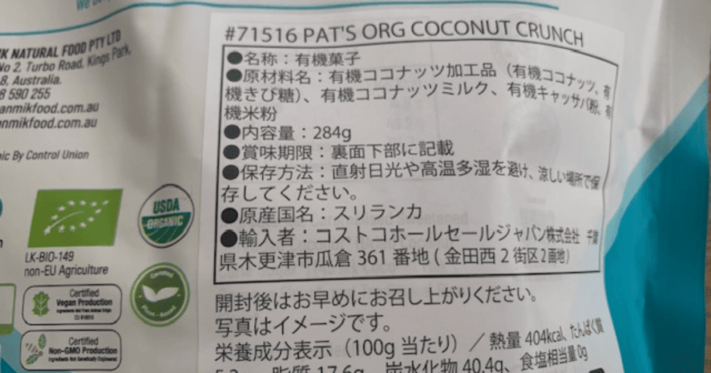 今回は、オーストラリア発の「パッツ オーガニック ココナッツクランチ」を実際に購入して食べてみました。